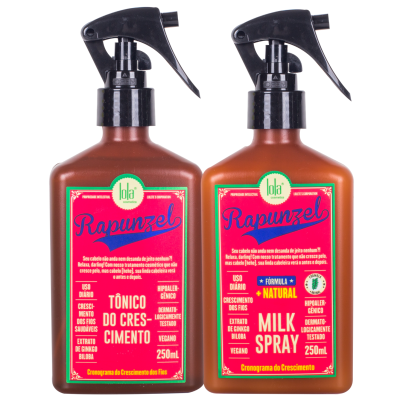 Este kit combina dois produtos da gama Rapunzel para fortalecer os fios, reduzir a queda e promover crescimento saudável: