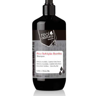 O Champô Pro-Nutrição Bomba nutre rapidamente, devido ao seu complexo de óleos: Óleo Vegetal de Linho, Rícino, Coco, Karanja, Manteiga de Manga, Tensioactivos Suaves, promovendo suavidade e brilho, desembaraçando e alinhando a fibra capilar, reparando por meio da nutrição o cabelo seco e crespo.
